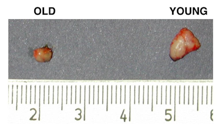 In particular, we found that the cyclists still made lots of new immune T cells, produced by an organ called the thymus, which normally starts to shrink after we reach puberty. The older cyclists seemed to have a thymus that was making as many new T cells as the young people’s. The lifelong cycling seemed to have slowed down the aging of their immune systems.